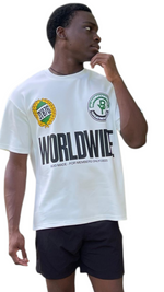 Front graphics: “WORLDWIDE” block lettering, BY876 wreath crest & “BawnYahsuh Greatness” seal